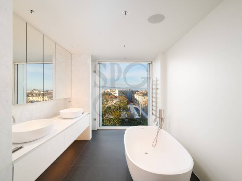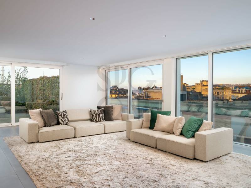 In the heart of the city, this rare triplex offers generous volumes, high-end finishes, and spectacular views of the lake, the Alps, and the Jura mountains.