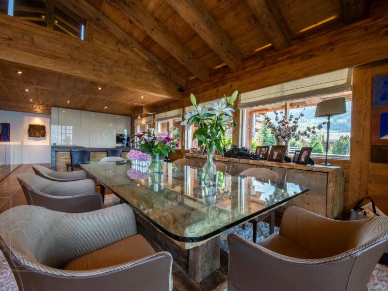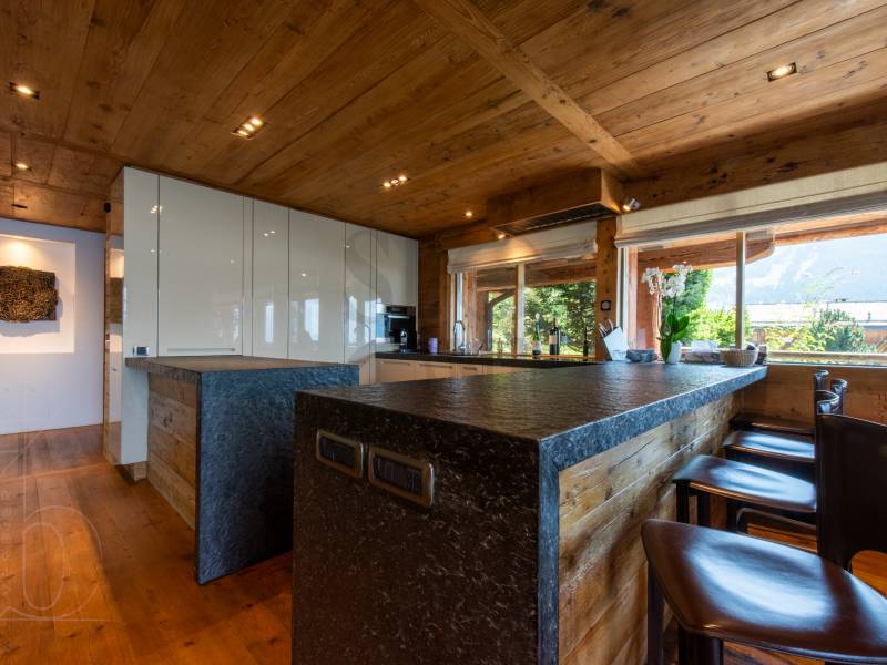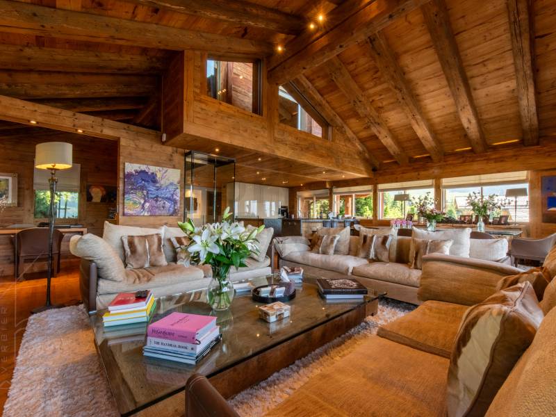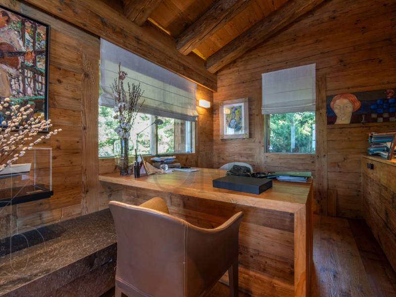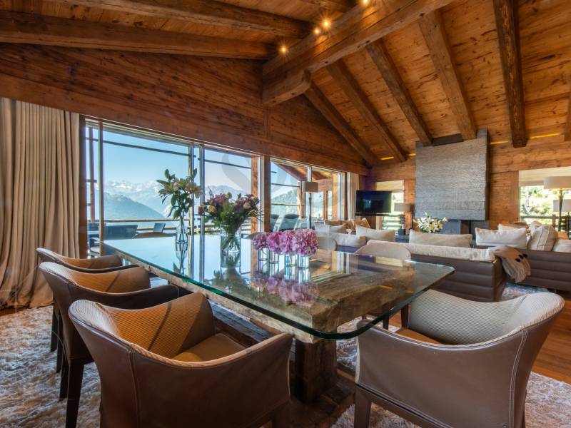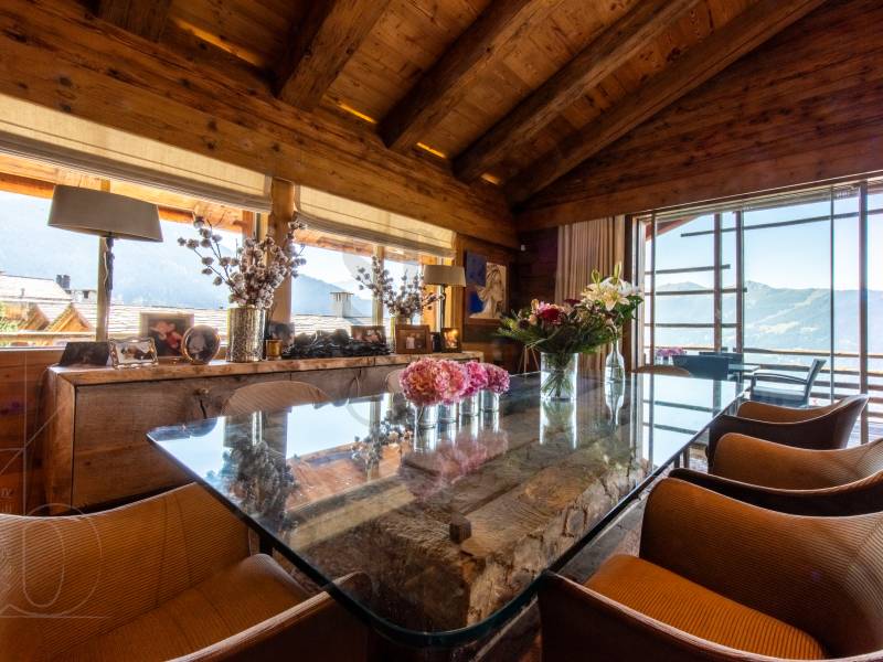 Hidden from view, this splendid chalet masterfully blends Alpine charm with contemporary architecture, standing proudly in a unique setting. This exceptional seven-room property offers a living area of 550 m².