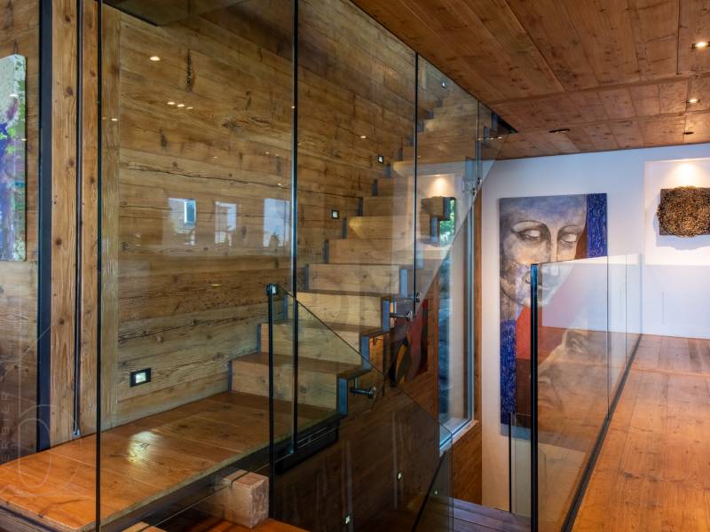 From the moment you enter, your gaze is drawn to the subtle interplay of light, the nobility of aged wood, the purity of glass, and the meticulous selection of refined materials. Here, daily life unfolds against a breathtaking panorama of mountain peaks, where every moment becomes a unique experience and luxury is enjoyed with utmost discretion. The six bedrooms, true cocoons, provide everyone with a gentle, tranquil atmosphere ideal for rest. The indoor pool invites relaxation, while the wellness area promises moments of pure serenity. These amenities are shared with two other units.