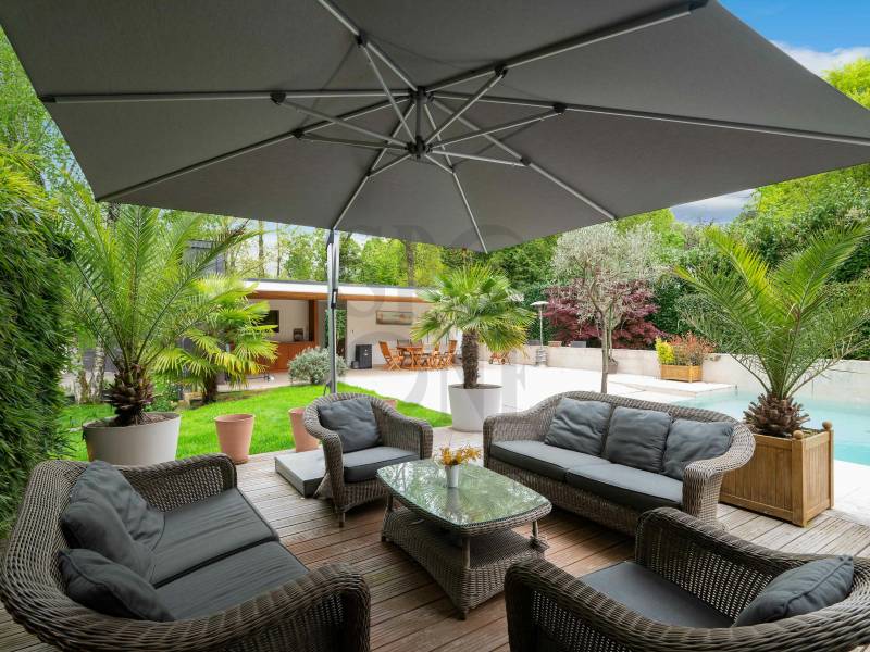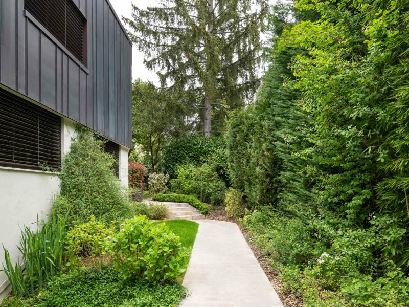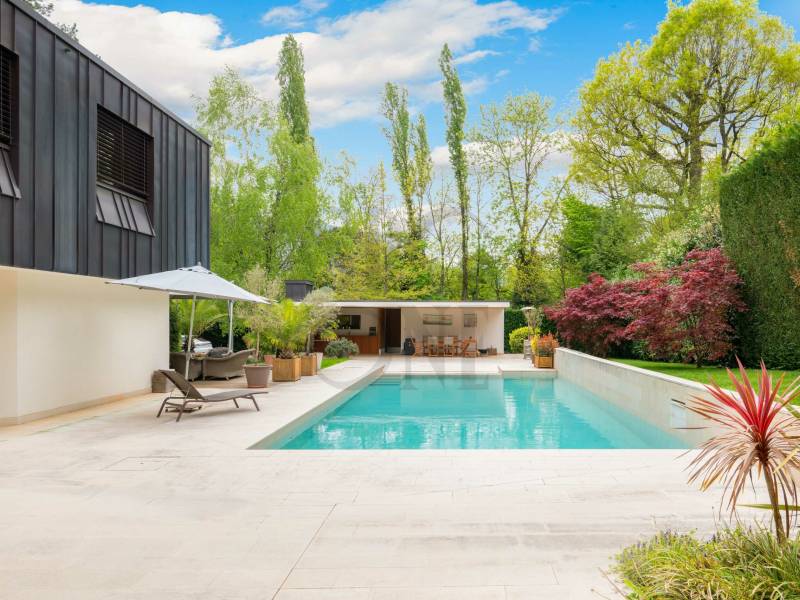 Ideally located in one of Geneva’s most sought-after neighborhoods, this architect-designed villa built in 2010 stands out for its contemporary elegance, high-end finishes and generous volumes. Set on a superb landscaped plot of 1’875 m², it offers a unique setting, combining calm, privacy and optimal sunshine throughout the day.