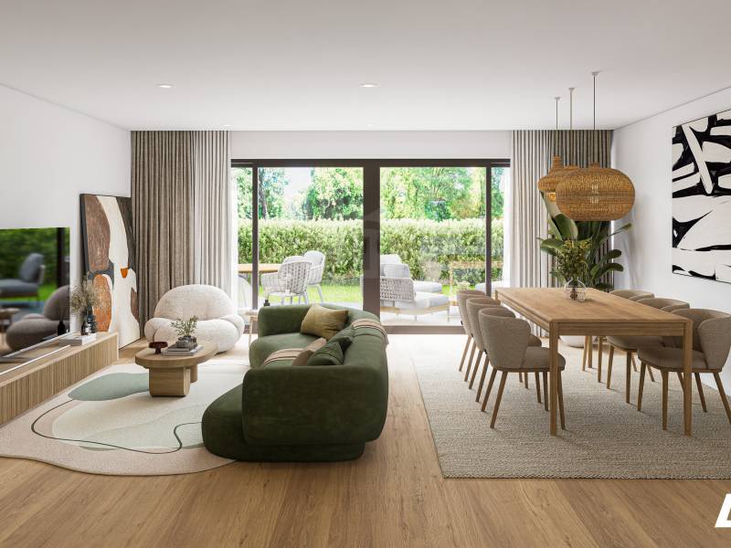 Ground floor: Entrance hall with guest toilet, kitchen opening onto the living/dining room, which opens onto a terrace and private garden ideal for relaxing with family or friends.