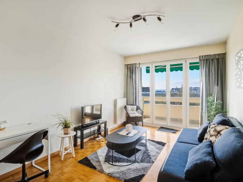 Situé au 7ème étage d’un immeuble en copropriété cet agréable appartement meublé de 3 pièces et d’environ 52m2 PPE est disposé comme suit :