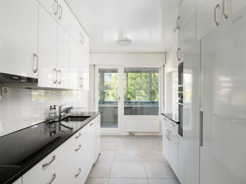 – Cuisine fermée, entièrement agencée et équipée avec coin repas, accès loggia