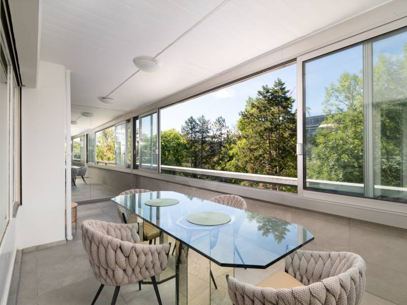 Ce superbe appartement meublé de 4,5 pièces et de 148m2 PPE entièrement rénové situé au 4ème étage d’une copropriété de standing qui possède 2 piscines intérieures et 2 piscines extérieures.