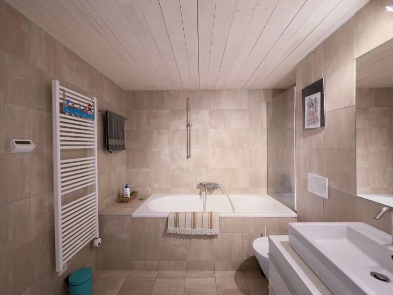 – Salle de bains / WC / double vasque avec machine à laver le linge