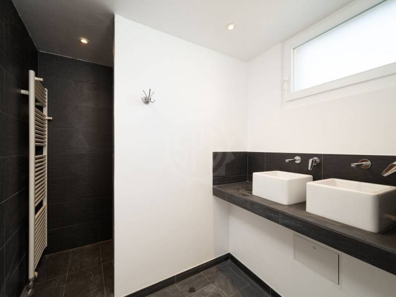Une salle de douche double vasque/wc