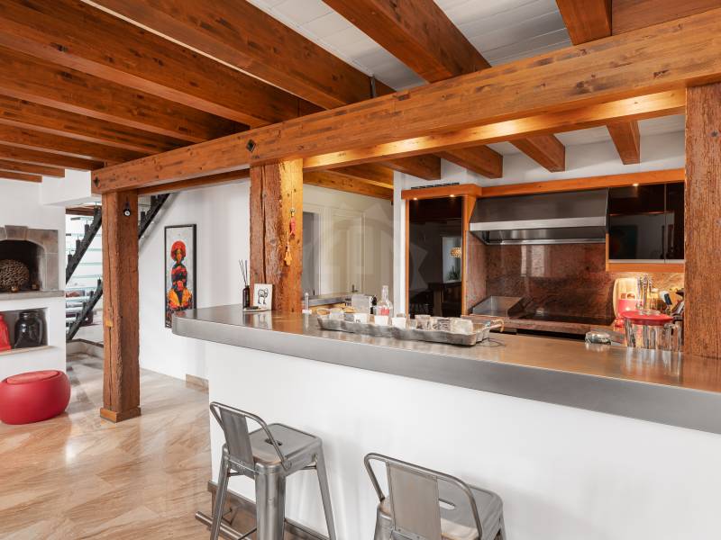 - Cuisine ouverte avec bar, entièrement agencée et équipée