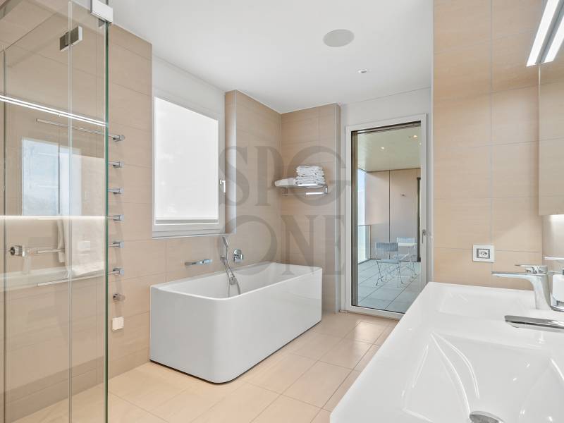 En première ligne face au Lac, cet appartement de 5 pièces (d’env. 232 m2) au rez supérieur, se décline comme suit :