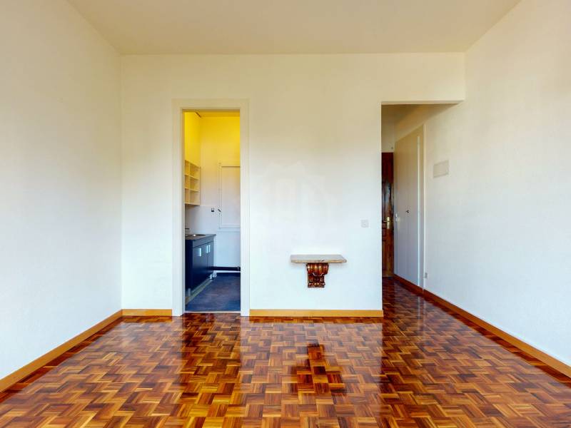 L’espace comprend un petit hall d’entrée donnant sur une pièce carrée.