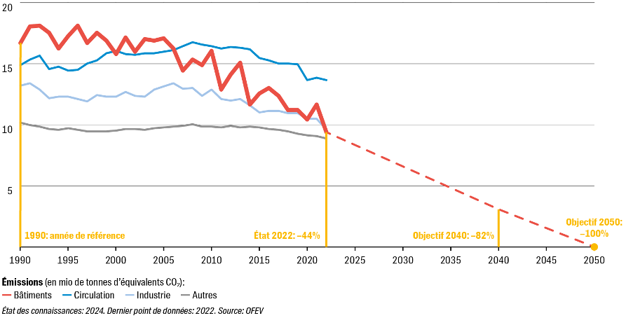 En Suisse, le parc immobilier a déjà réduit ses émissions de CO₂ de près de 50 % depuis 1990, malgré une augmentation de 46,6 % des surfaces chauffées. Cette performance prouve que les investissements en rénovation énergétique produisent des résultats concrets.