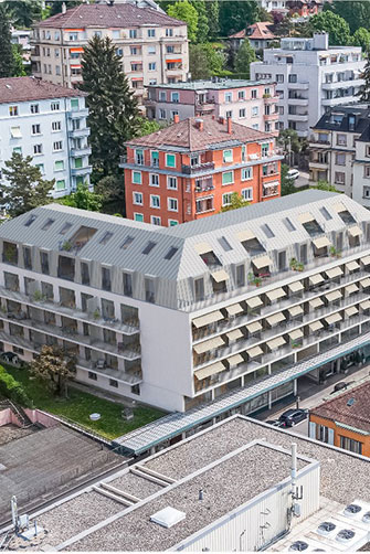 Situé au cœur de Lausanne dans un quartier résidentiel, le projet « Monribeau » illustre une approche ambitieuse et respectueuse de l’environnement, conjuguant rénovation énergétique globale et création de logements en surélévation.