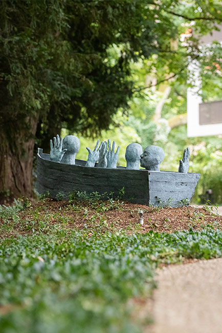 Un ensemble de sculptures en bronze symbolisant transformation et espoir, inspirée des thèmes de la migration et de la mémoire. - « Mirador Fronto » de l’artiste argentin Pablo Reinoso :