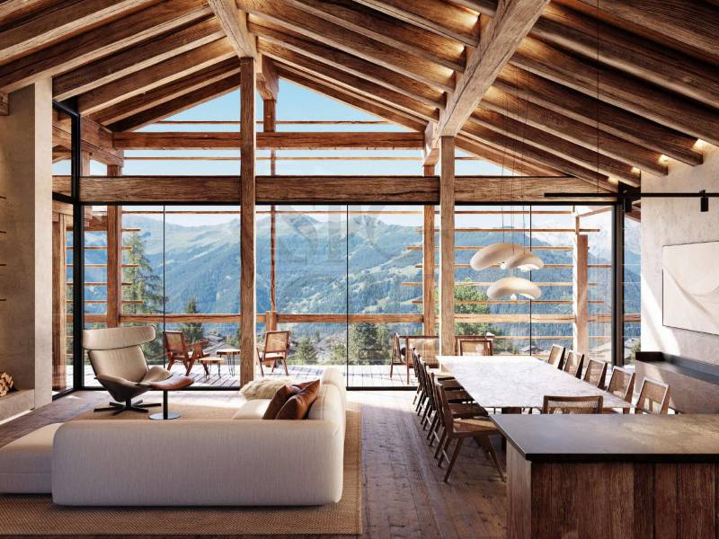 Nichée sur une parcelle de 1’725 m², le projet prévoit la création de deux chalets indépendants abritant trois appartements en résidence secondaire. Ce programme haut de gamme marie parfaitement authenticité alpine et architecture contemporaine.