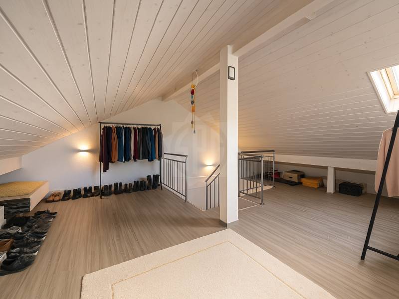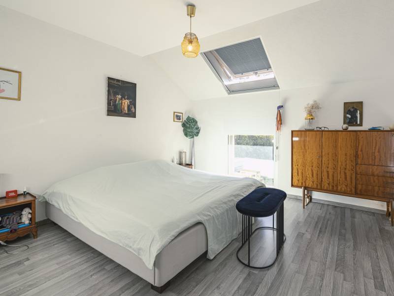 Les combles offrent un espace à aménager selon vos envies : salle de jeux, atelier ou chambre spacieuse, avec la possibilité d’y ajouter une salle d’eau supplémentaire.