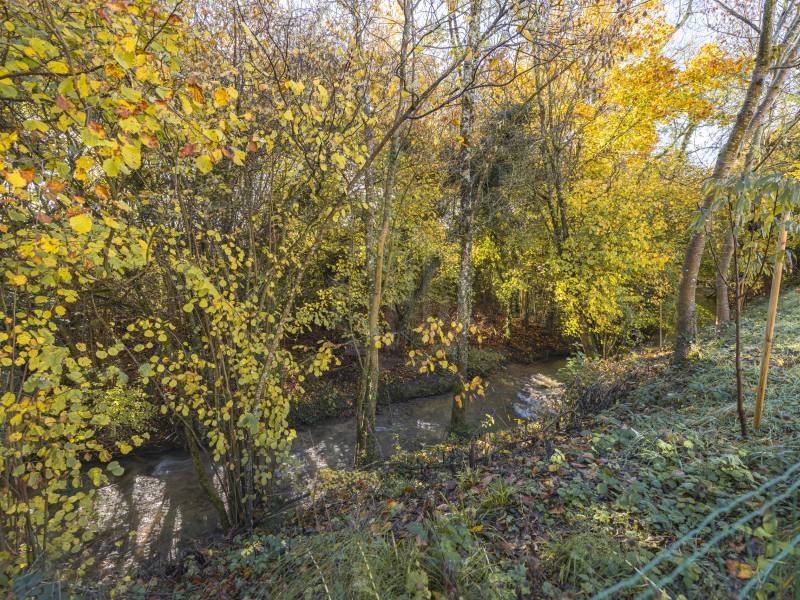 Côté extérieur, une agréable terrasse de 19,2 m² et un jardin privatif permettent de profiter pleinement des beaux jours. Le jardin descend légèrement et mène à un petit ruisseau, offrant un cadre paisible et bucolique.