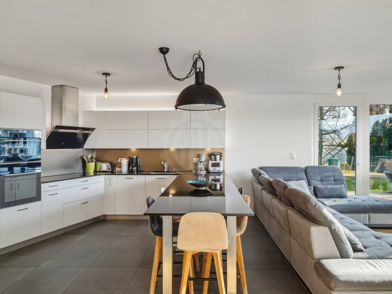 Idéalement située dans un petit quartier résidentiel de Brétigny-sur-Morrens, cette élégante villa jumelée par les garages, développant 161 m² habitables et 5.5 pièces, incarne une parfaite alliance entre architecture contemporaine, prestations haut de gamme et qualité de vie. Baignée de lumière et implantée dans un environnement paisible, elle bénéficie d’un ensoleillement optimal et d’un cadre verdoyant, propice aux promenades en forêt ou en pleine campagne.