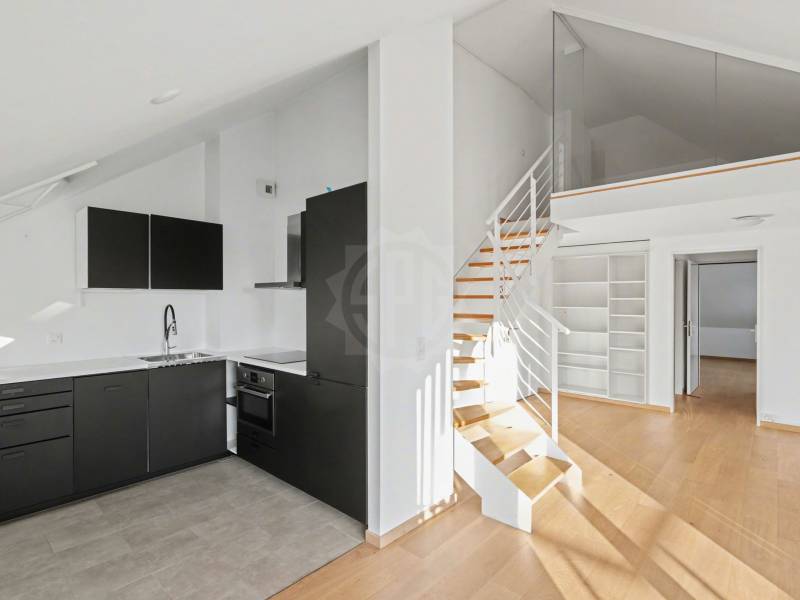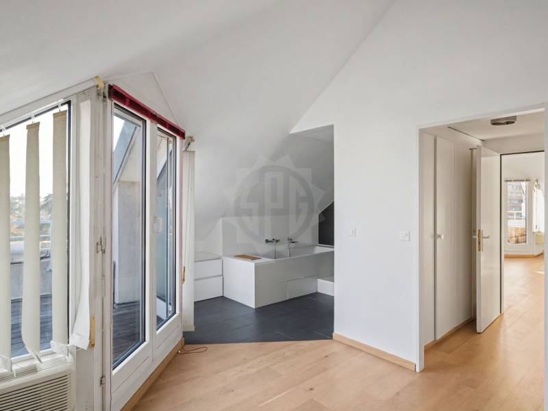 L’appartement, très lumineux, se compose d’un agréable séjour avec cuisine ouverte, ouvrant sur une première terrasse. La mezzanine, quant à elle, offre un espace supplémentaire propice à l’aménagement d’un bureau.