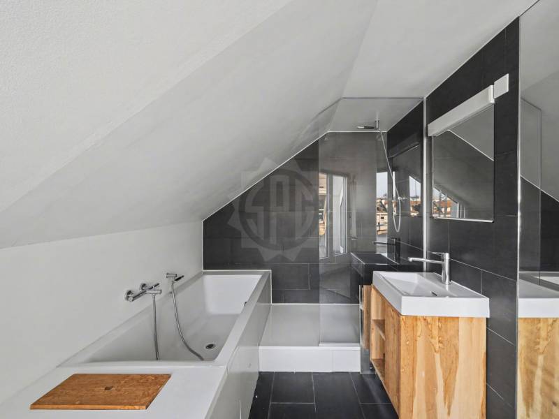Il dispose d’une surface de 90 m2 PPE, complétée par une mezzanine de 16 m2, ainsi que par deux espaces extérieurs totalisant 16 m2.