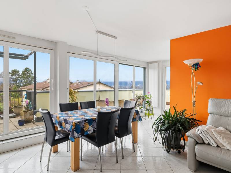 D’une superficie de 141.10 m2 PPE, cet appartement se déploie sur deux niveaux pour offrir un cadre de vie spacieux et lumineux. Il dispose d’une vaste terrasse de 56.80 m², véritable espace de vie extérieur pouvant accueillir un coin repas et détente tout en profitant d’une vue dégagée.