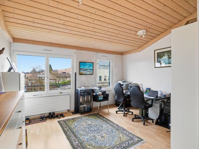 Ce charmant duplex de 5 pièces se trouve en attique d’une copropriété regroupant 6 appartements. Située à deux pas du centre du village, il est possible d’accéder à pied à l’ensemble des commerces, services de proximité, ainsi qu’à l’école. Un arrêt de tramway, situé à seulement trois minutes de marche, offre par ailleurs une liaison directe et rapide vers Genève.