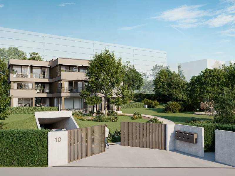Le projet prend place sur une parcelle de 2’513 m² et se compose d’un immeuble de deux étages surmonté d’un attique, complété par un sous-sol abritant les places de stationnement. Chaque étage accueille trois appartements, avec jardins privatifs au rez-de-chaussée et balcons ou terrasses pour les logements des étages supérieurs, permettant ainsi de profiter pleinement du cadre verdoyant.