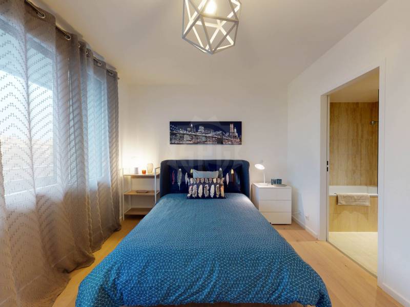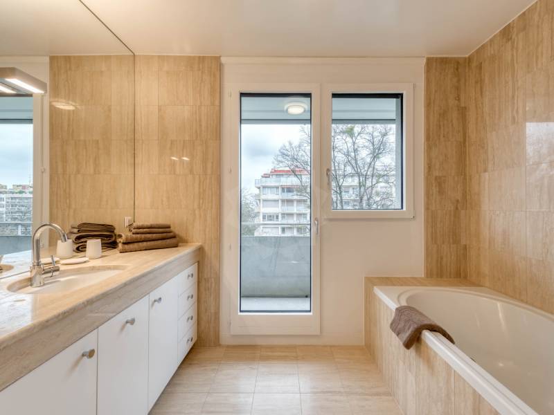 Le second espace nuit se compose d’une chambre avec salle de bains en suite et accès balcon, d’une troisième chambre, d’une salle de bains indépendante et d’un espace buanderie.