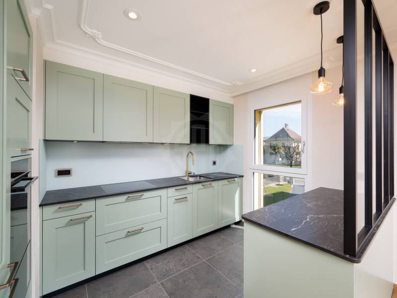 L’espace jour de 38 m², baigné de lumière naturelle, se compose d’un vaste salon et d’une cuisine ouverte. La cuisine est entièrement agencée et équipée avec des appareils de haute qualité et un magnifique plan de travail en dekton. Un balcon de 10 m2 accessible depuis les portes fenêtres du séjour permet de profiter des douces soirées d’été.