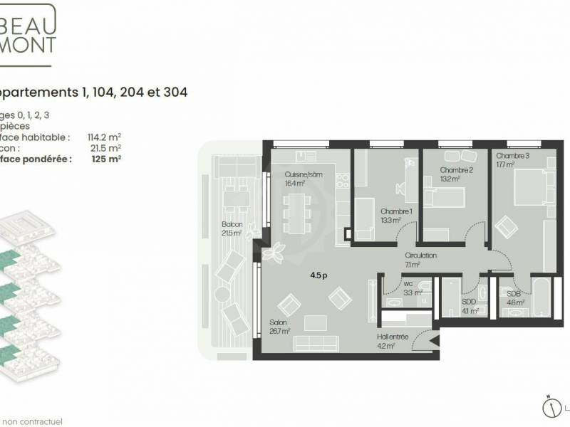 Dernière opportunité ! Situé au 1er étage de la promotion BEAUMONT, ce spacieux appartement neuf de 4.5 pièces, idéal pour un couple ou une famille, offre un cadre de vie confortable et serein dans un quartier calme et parfaitement connecté de Lausanne :