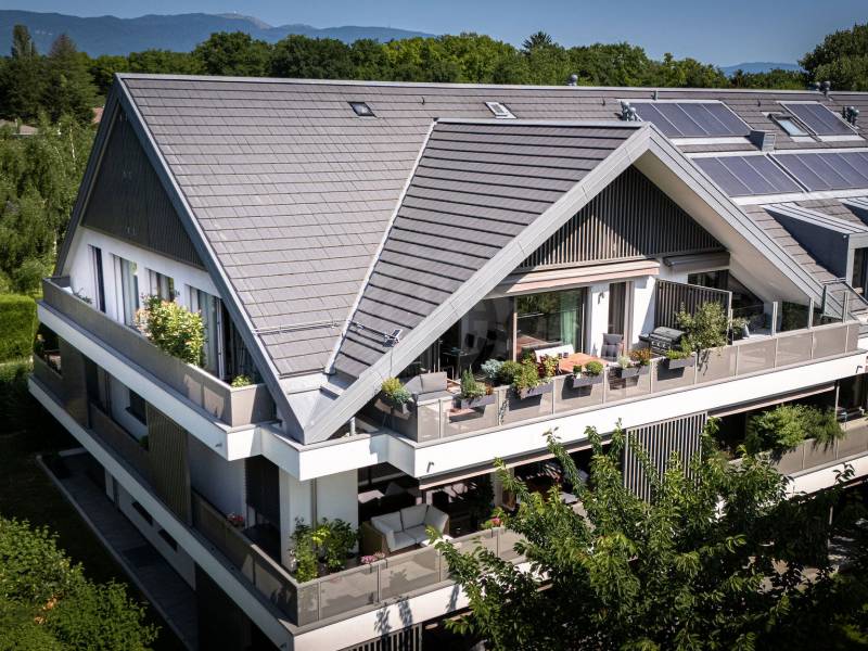En option, deux garages box fermés avec portes motorisés et prises pour voiture électrique sont disponibles au prix de CHF 75’000.- par unité.