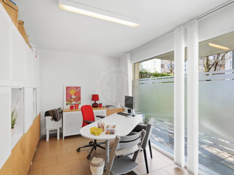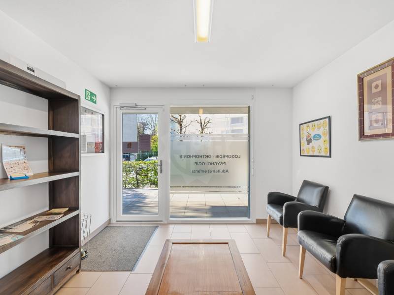 Ce bien, situé au rez-de-chaussée d'une PPE récente, développe une surface d'environ 100 m², complétée par une terrasse privative de 30 m². Il dispose d'une entrée indépendante aux normes commerciales, garantissant une excellente accessibilité. Actuellement exploité en cabinet, il se compose d'une salle d'attente, de quatre bureaux tous loués, ainsi que d'une cuisine, d'une salle de douche et de WC séparés. La distribution est rationnelle, fonctionnelle et parfaitement adaptée à une activité professionnelle.