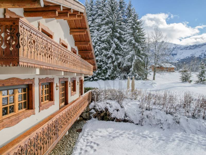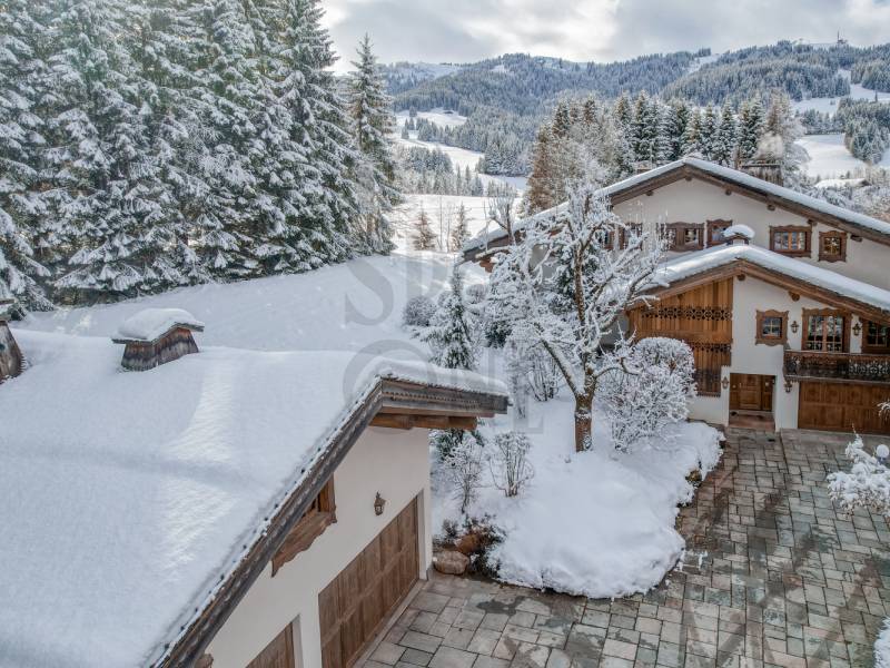 D’une surface totale d’environ 700 m², la propriété se compose de deux chalets offrant des prestations haut de gamme. Une architecture emblématique revisitée avec élégance
