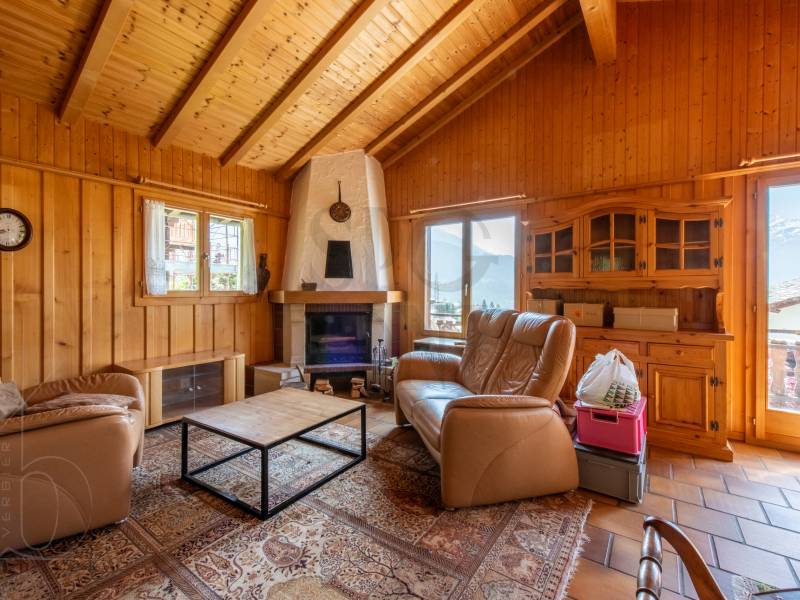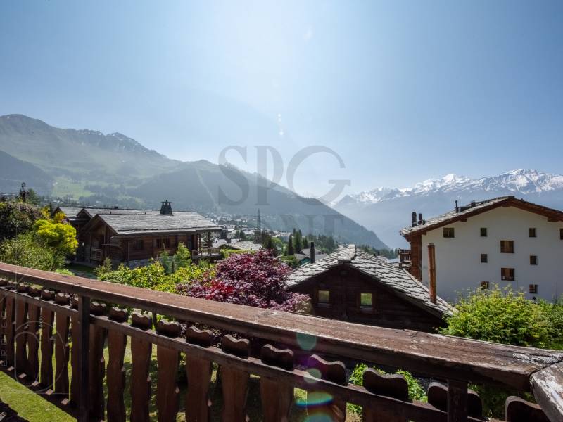 Ce chalet de 5 pièces est un lieu paisible avec une très belle vue sur le Val de Bagnes et ses sommets. Nichée sur une parcelle de 382 m², cette propriété bénéficie d’un environnement chaleureux qui dégage une atmosphère de village, avec des chalets voisins bien soignés avec verdures et potagers, tout en étant idéalement située à proximité de l’arrêt de bus pour un accès rapide aux pistes de ski et au centre de la station.
