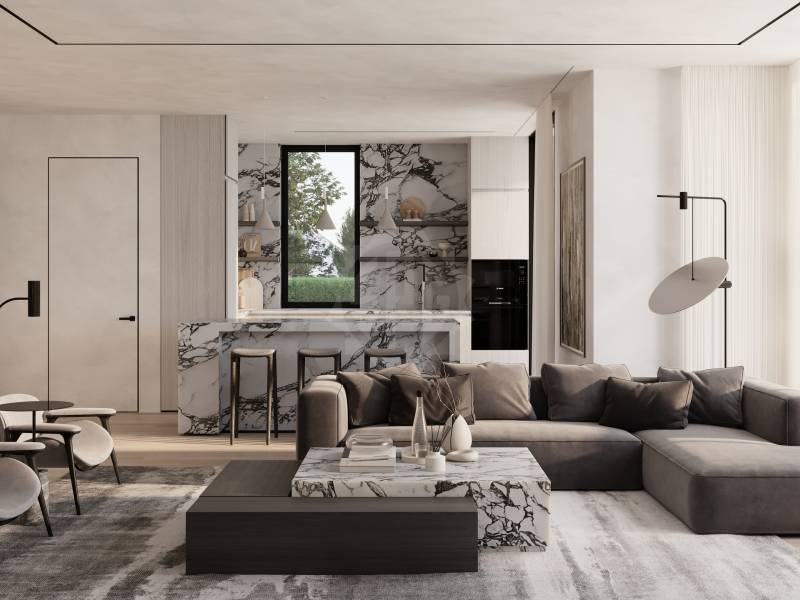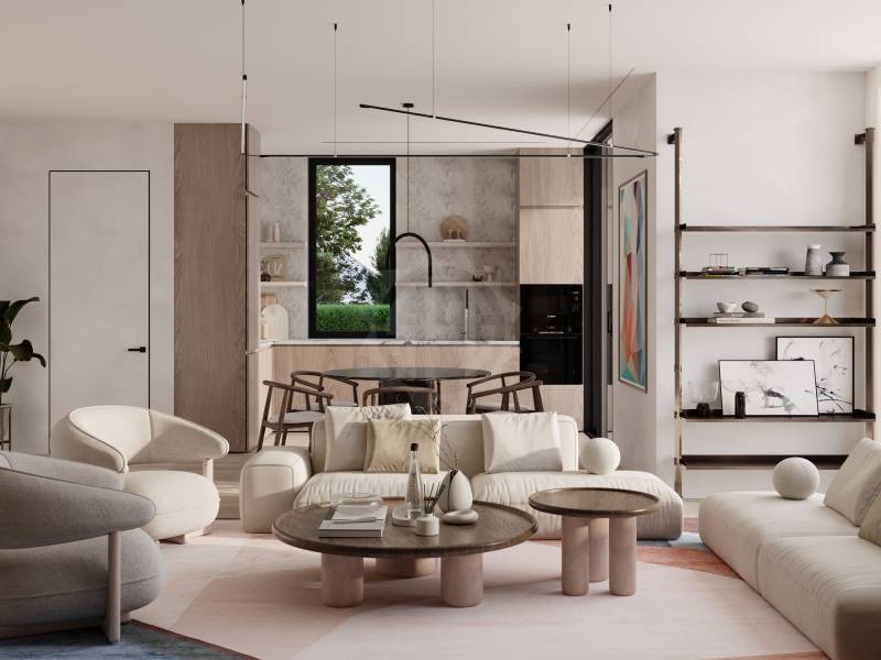 Un large et lumineux espace vous accueille composé d’une entrée, d’une cuisine ouverte, d’un salon / salle à manger et d’un WC / visiteurs. Disposant de lumière naturelle, ce niveau est conçu de manière à s’ouvrir sur les extérieurs, véritables espaces de vie aux beaux jours.