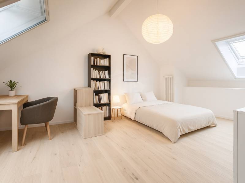 À l’étage, on trouve deux belles chambres aux volumes généreux, une salle de douche avec WC séparé, ainsi qu’une suite parentale avec douche et lavabo attenants.