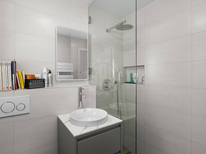 Dès l’entrée, vous serez séduits par une vaste pièce de vie lumineuse aux teintes sobres, sublimée par de larges baies vitrées qui ouvrent sur un jardin intime et verdoyant.