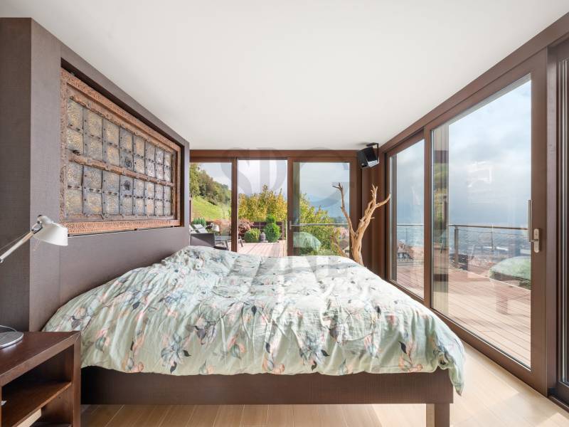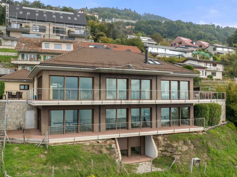 Nichée dans la charmante commune de Chardonne, au cœur-même de la Riviera vaudoise, à deux pas de Vevey et Montreux, cette superbe villa d’architecte contemporaine offre une vue panoramique époustouflante sur le lac Léman et les montagnes.