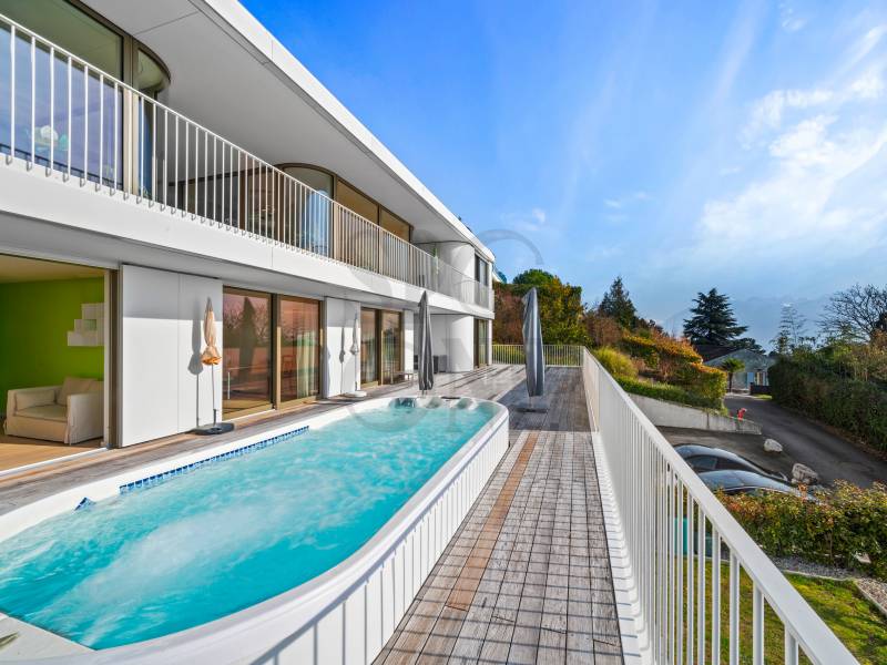 Disposant d’une superficie de plus de 230 m² habitables, cette maison d’exception se distingue par ses larges baies vitrées qui laissent entrer une lumière naturelle abondante et offrent des panoramas spectaculaires sur le lac Léman et les montagnes environnantes.