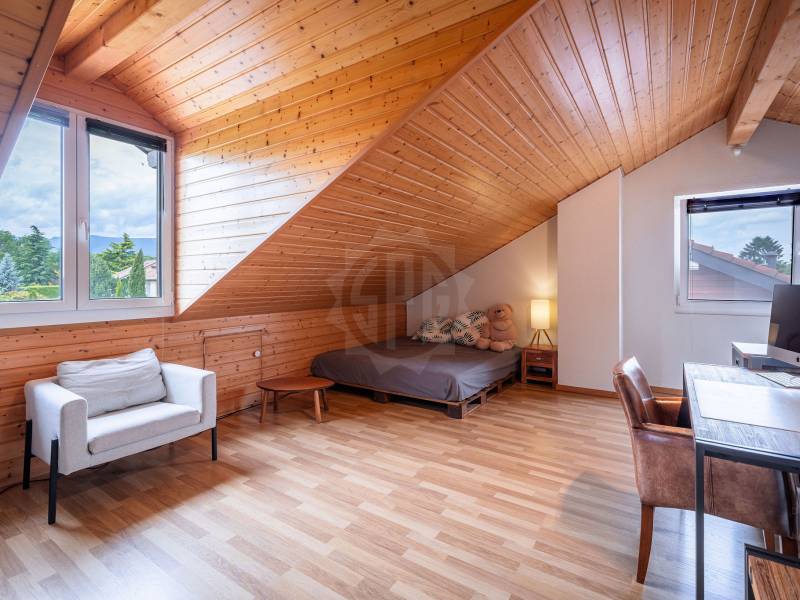 - Combles aménagés : grande pièce polyvalente idéale pour un espace détente ou jeux, coin bureau, salle de bains avec WC